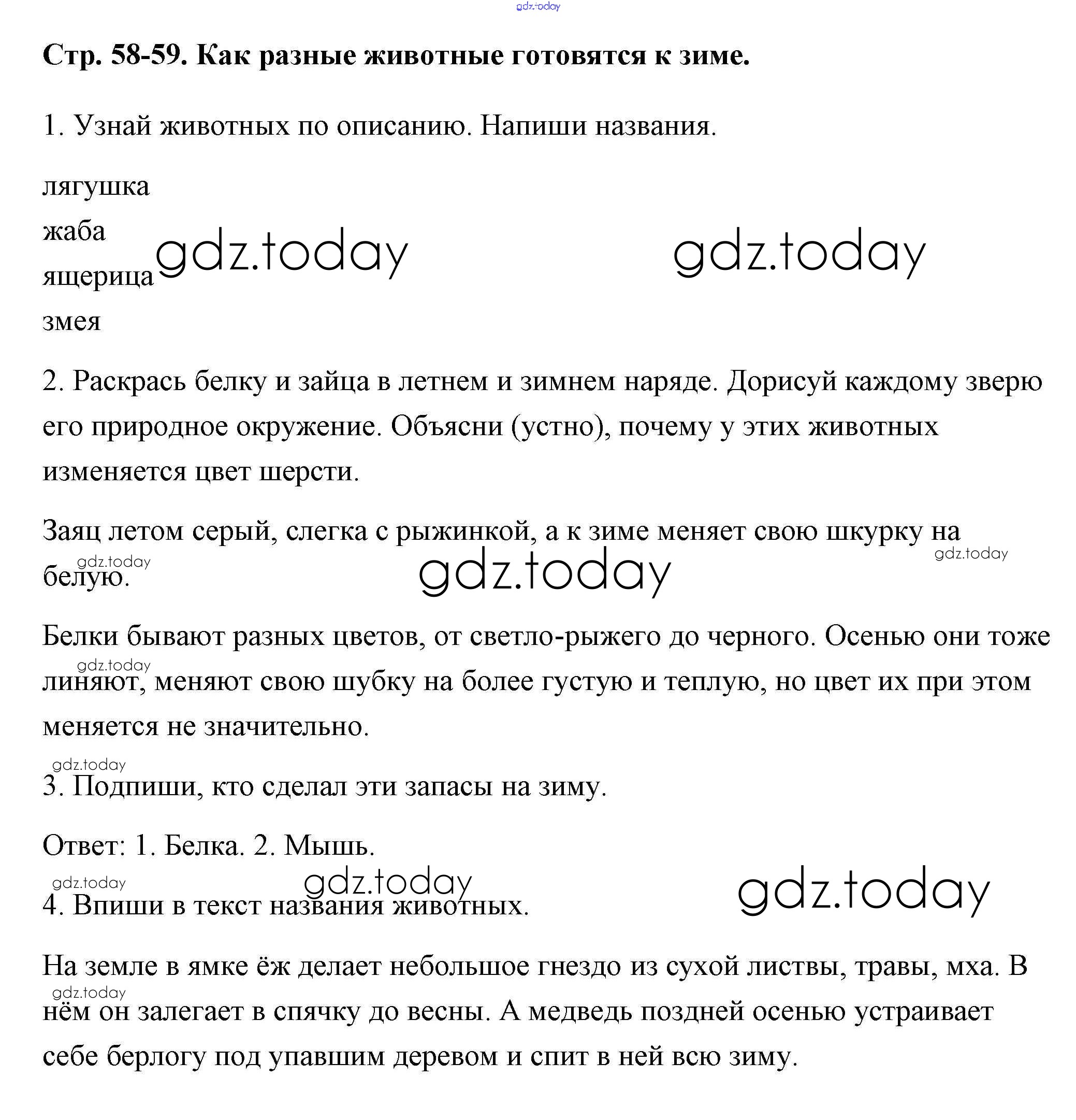 Ответы к Решение к части 1 (Страницы) 58-59 Рабочей тетради по Окружающему миру для 2 класса Плешаков, Новицкая Просвещение Перспектива 2017