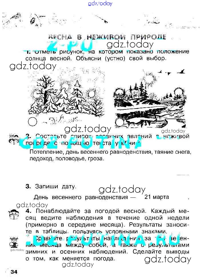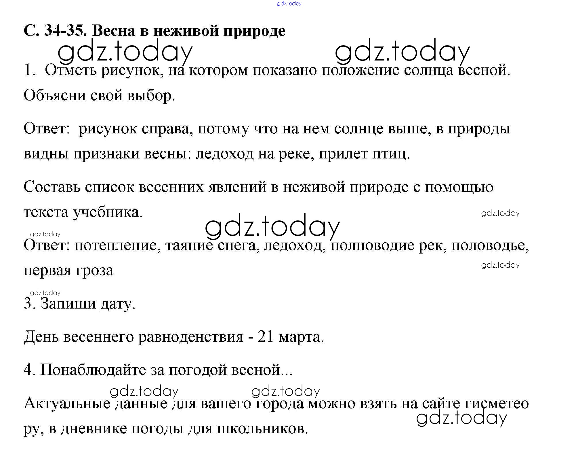На страницах сайта gdz.today вы найдете учебный и вспомогательный материал, направленный на улучшения знаний школьной программы. ГДЗ - онлайн мир знаний Решение к части 2 (Страницы) 34-35 Рабочей тетради по Окружающему миру для 2 класса Плешаков, Новицкая Просвещение Перспектива 2017