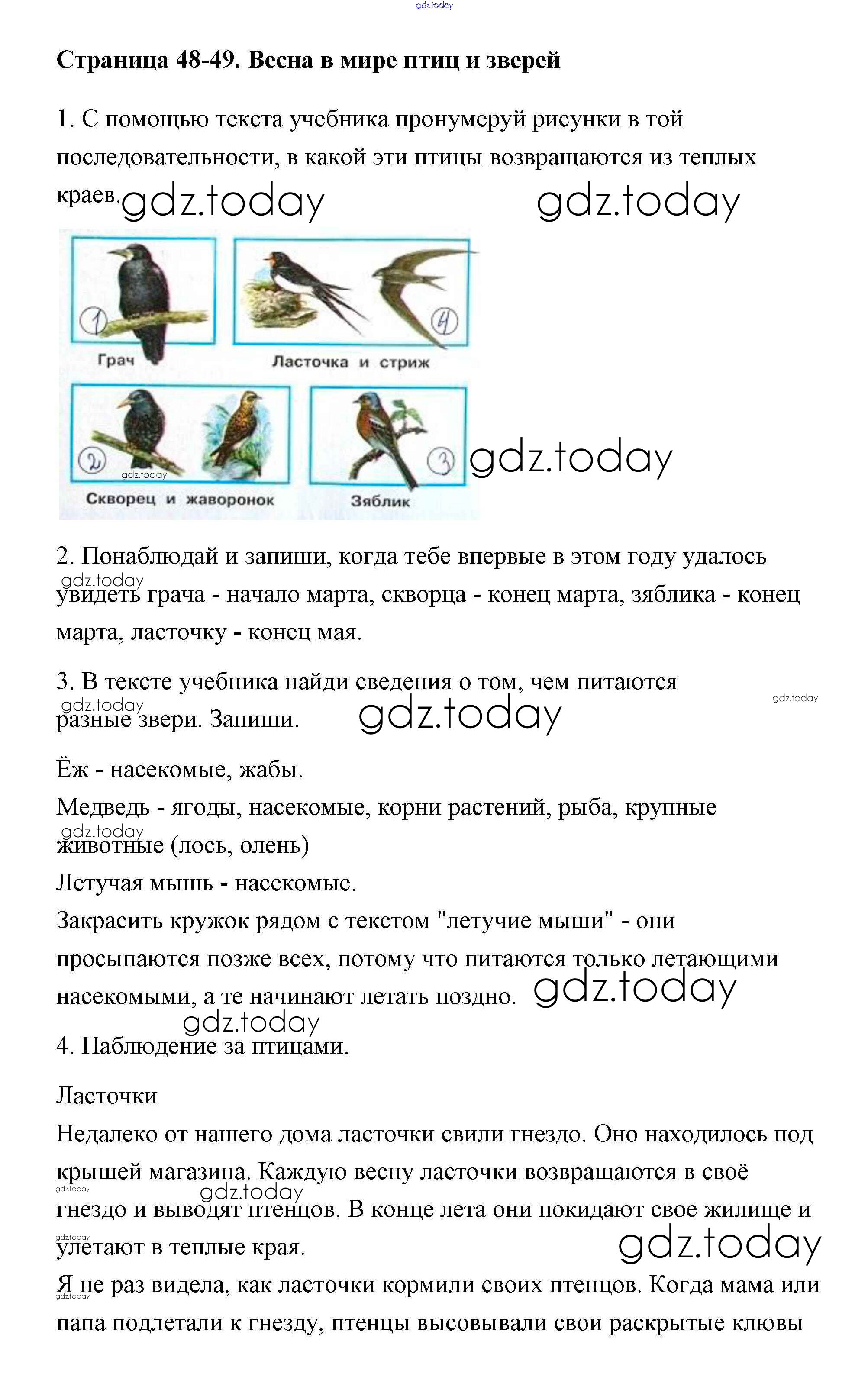 На страницах сайта gdz.today вы найдете учебный и вспомогательный материал, направленный на улучшения знаний школьной программы. ГДЗ - онлайн мир знаний Решение к части 2 (Страницы) 48-49 Рабочей тетради по Окружающему миру для 2 класса Плешаков, Новицкая Просвещение Перспектива 2017