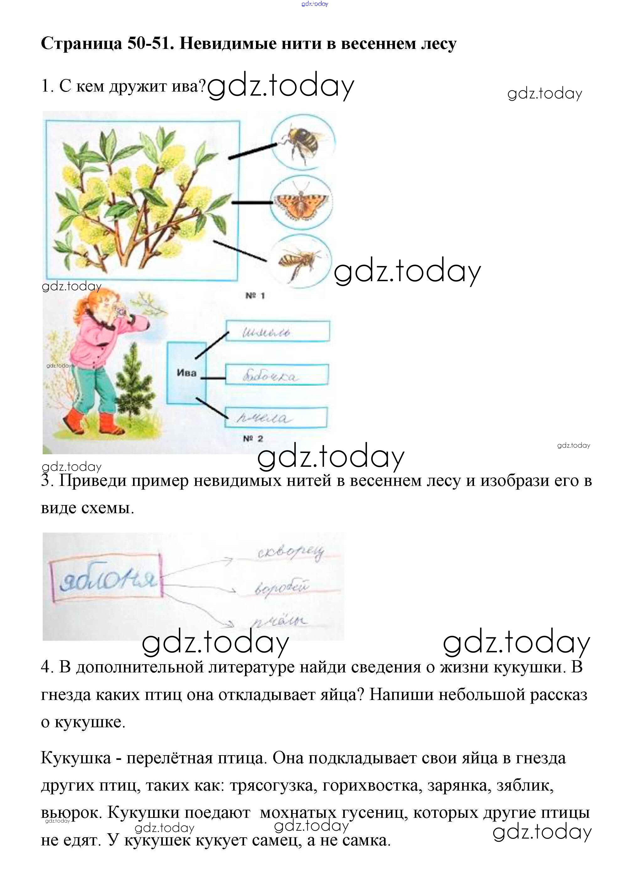 На страницах сайта gdz.today вы найдете учебный и вспомогательный материал, направленный на улучшения знаний школьной программы. ГДЗ - онлайн мир знаний Решение к части 2 (Страницы) 50-51 Рабочей тетради по Окружающему миру для 2 класса Плешаков, Новицкая Просвещение Перспектива 2017