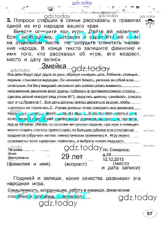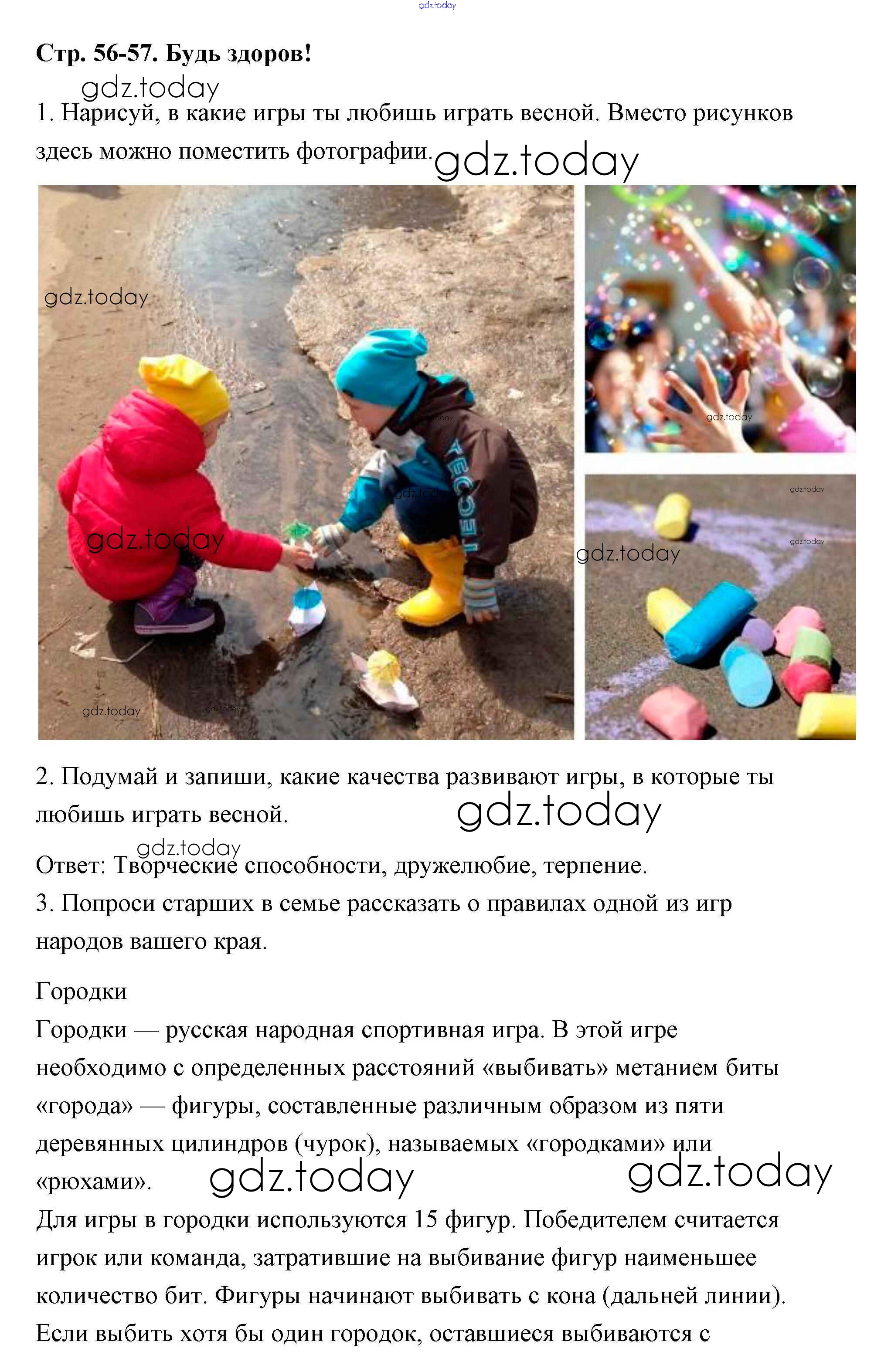 На страницах сайта gdz.today вы найдете учебный и вспомогательный материал, направленный на улучшения знаний школьной программы. ГДЗ - онлайн мир знаний Решение к части 2 (Страницы) 56-57 Рабочей тетради по Окружающему миру для 2 класса Плешаков, Новицкая Просвещение Перспектива 2017