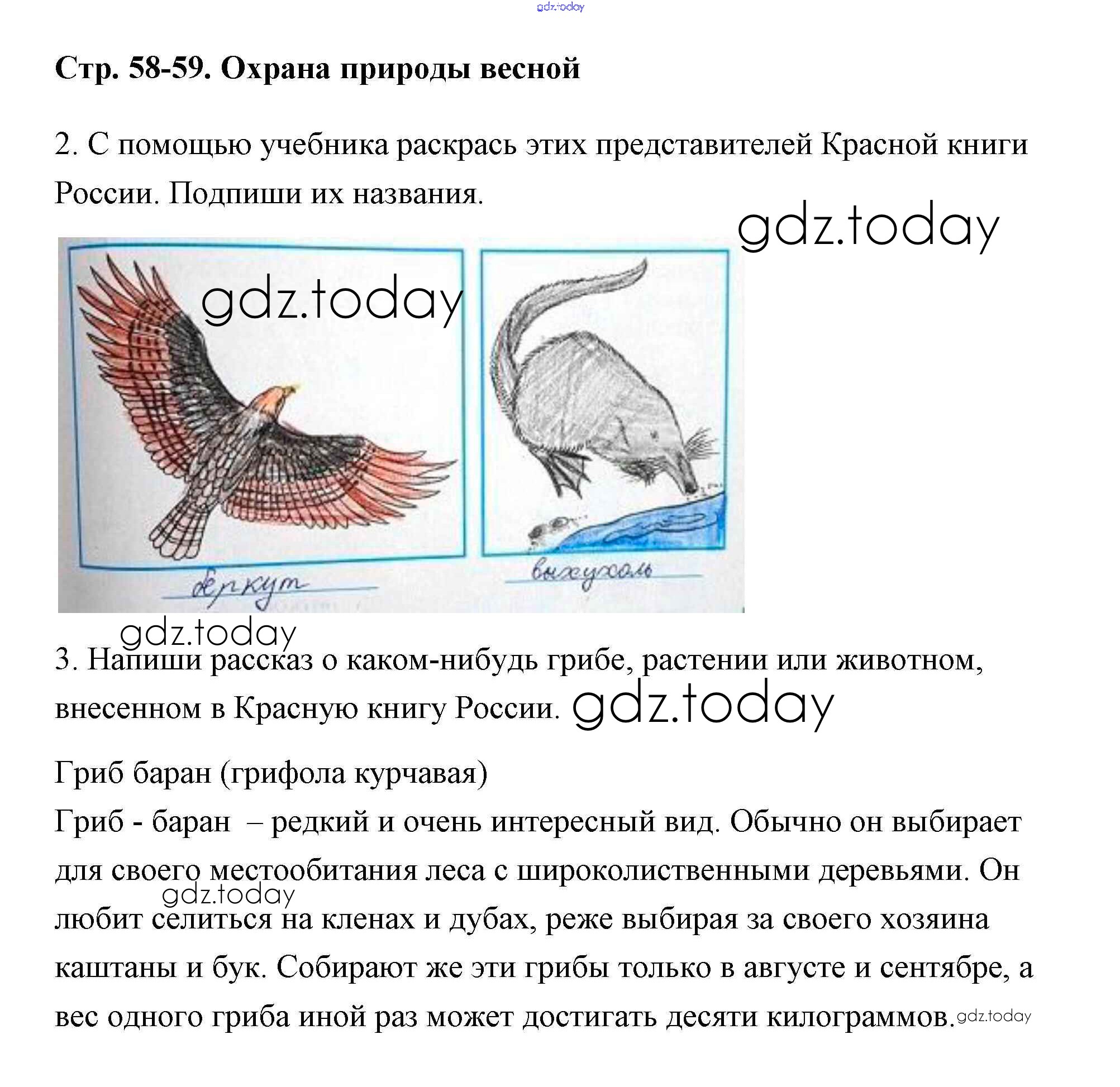 На страницах сайта gdz.today вы найдете учебный и вспомогательный материал, направленный на улучшения знаний школьной программы. ГДЗ - онлайн мир знаний Решение к части 2 (Страницы) 58-59 Рабочей тетради по Окружающему миру для 2 класса Плешаков, Новицкая Просвещение Перспектива 2017