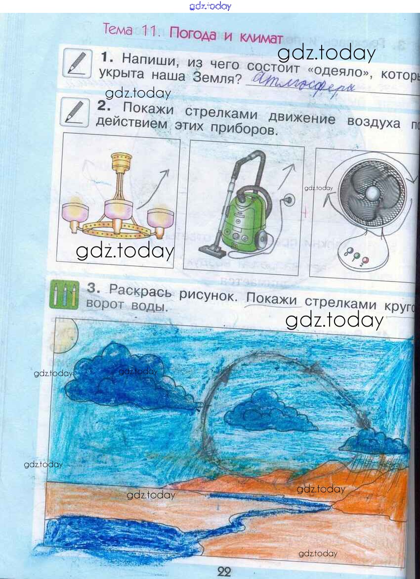 На страницах сайта gdz.today вы найдете учебный и вспомогательный материал, направленный на улучшения знаний школьной программы. ГДЗ - онлайн мир знаний Решение к теме 11. Погода и климат стр. 22 Рабочей тетради по Окружающему миру для 2 класса Вахрушев, Бурский Баласс Школа 2100 2016