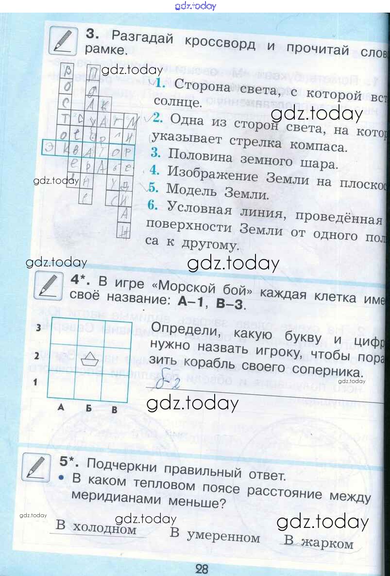 На страницах сайта gdz.today вы найдете учебный и вспомогательный материал, направленный на улучшения знаний школьной программы. ГДЗ - онлайн мир знаний Решение к теме 13. Глобус и карта стр. 28 Рабочей тетради по Окружающему миру для 2 класса Вахрушев, Бурский Баласс Школа 2100 2016