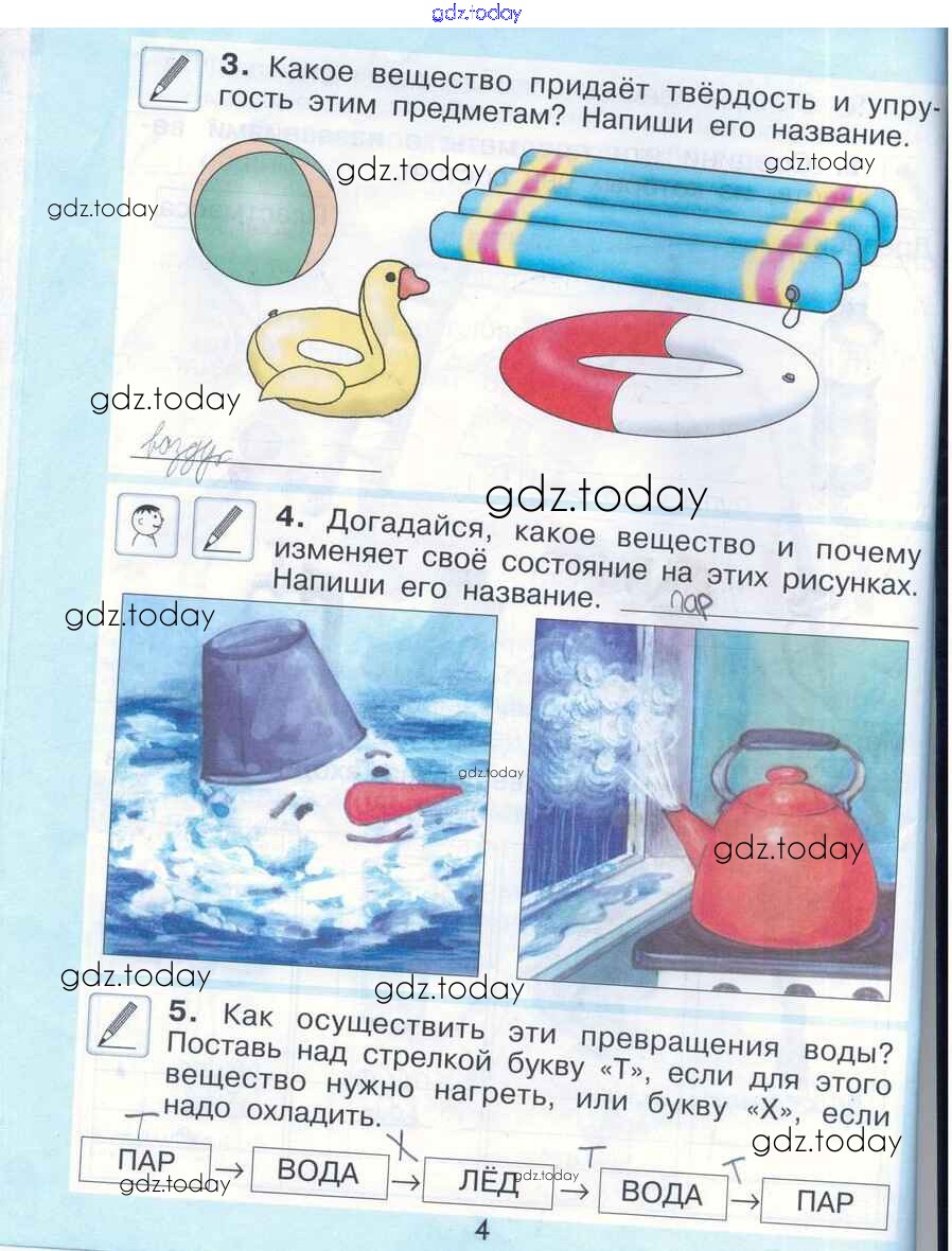 Ответы к Решение к теме 2. Из чего состоят все предметы стр. 4 Рабочей тетради по Окружающему миру для 2 класса Вахрушев, Бурский Баласс Школа 2100 2016