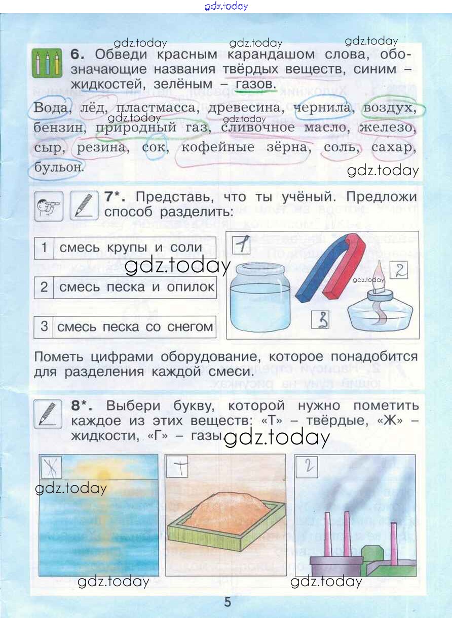 Ответы к Решение к теме 2. Из чего состоят все предметы стр. 5 Рабочей тетради по Окружающему миру для 2 класса Вахрушев, Бурский Баласс Школа 2100 2016