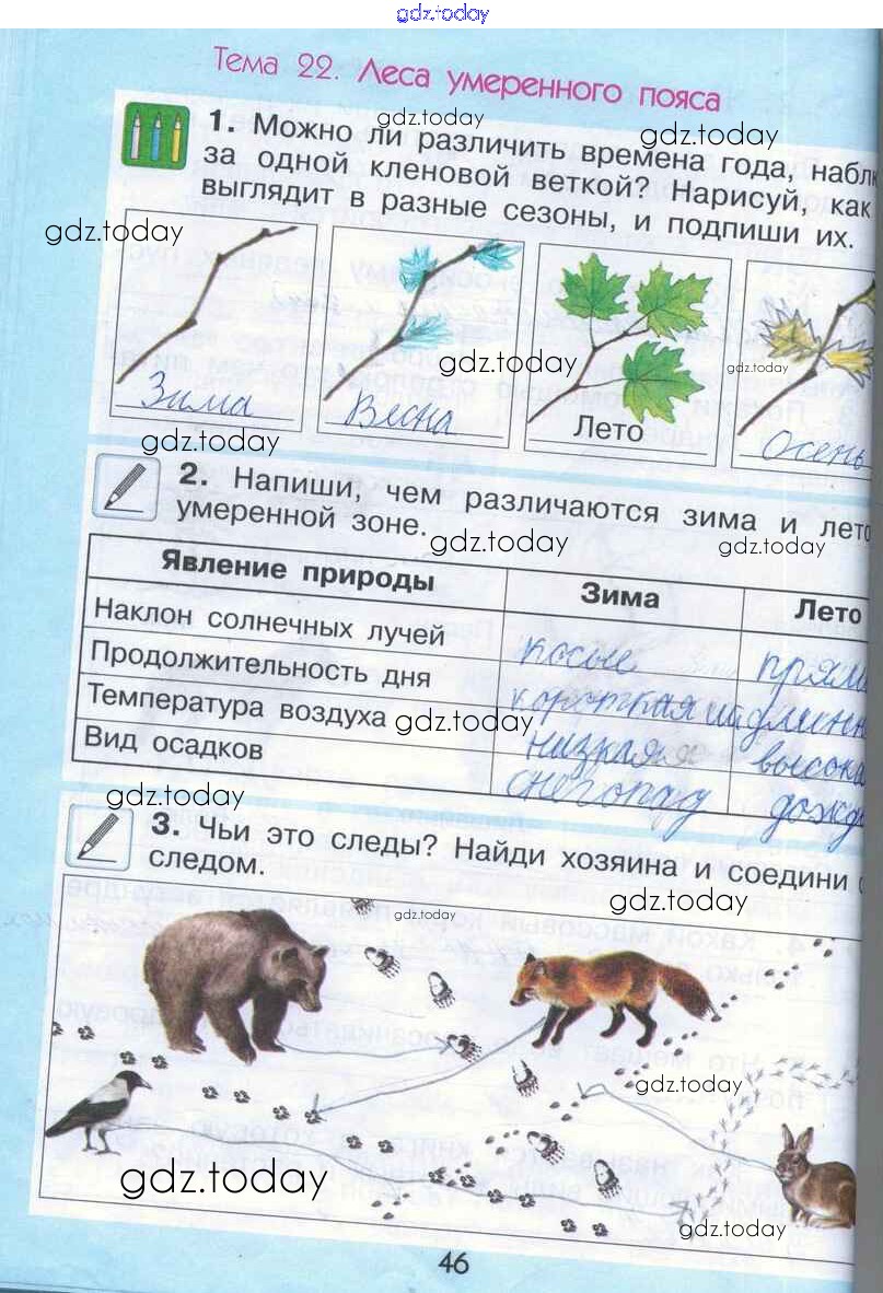 На страницах сайта gdz.today вы найдете учебный и вспомогательный материал, направленный на улучшения знаний школьной программы. ГДЗ - онлайн мир знаний Решение к теме 22. Леса умеренного пояса стр. 46 Рабочей тетради по Окружающему миру для 2 класса Вахрушев, Бурский Баласс Школа 2100 2016