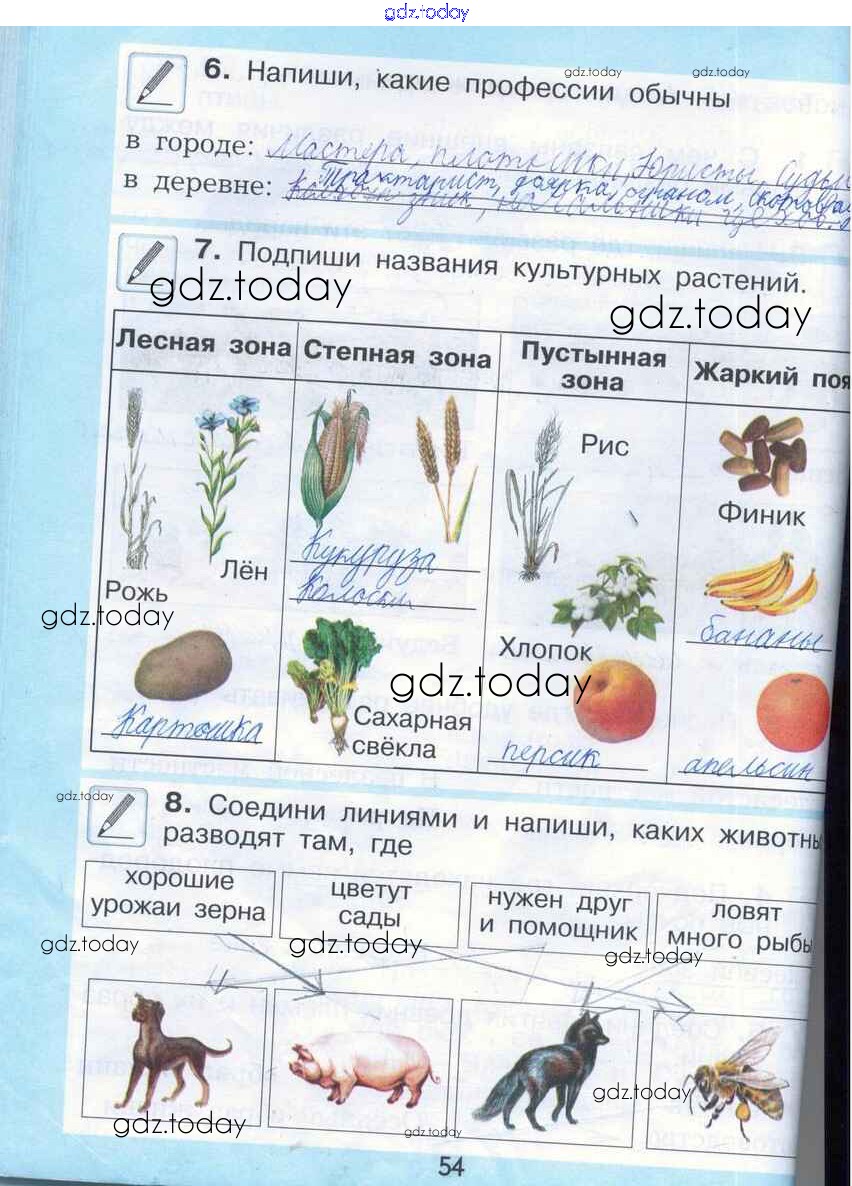 На страницах сайта gdz.today вы найдете учебный и вспомогательный материал, направленный на улучшения знаний школьной программы. ГДЗ - онлайн мир знаний Решение к теме 26. Люди, города и страны стр. 54 Рабочей тетради по Окружающему миру для 2 класса Вахрушев, Бурский Баласс Школа 2100 2016