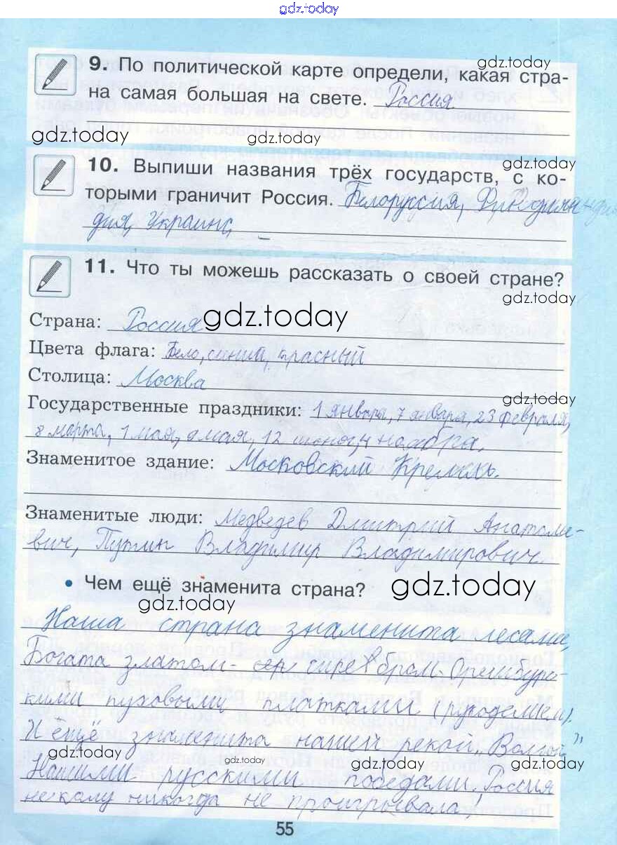 На страницах сайта gdz.today вы найдете учебный и вспомогательный материал, направленный на улучшения знаний школьной программы. ГДЗ - онлайн мир знаний Решение к теме 26. Люди, города и страны стр. 55 Рабочей тетради по Окружающему миру для 2 класса Вахрушев, Бурский Баласс Школа 2100 2016