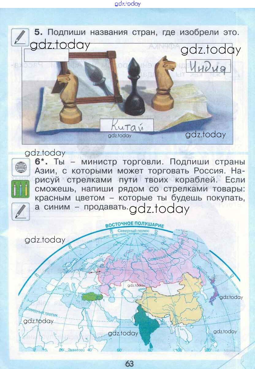 На страницах сайта gdz.today вы найдете учебный и вспомогательный материал, направленный на улучшения знаний школьной программы. ГДЗ - онлайн мир знаний Решение к теме 28. Азия стр. 63 Рабочей тетради по Окружающему миру для 2 класса Вахрушев, Бурский Баласс Школа 2100 2016