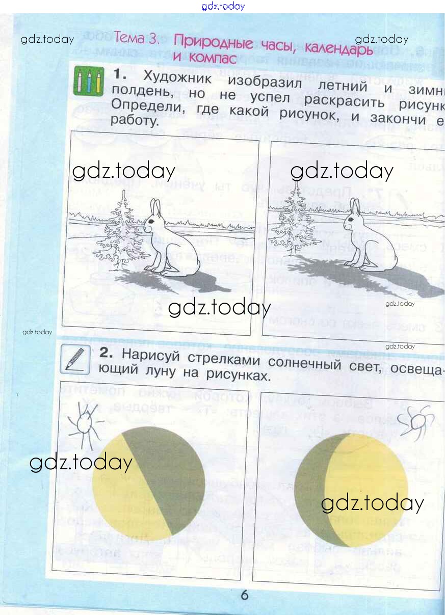Ответы к Решение к теме 3. Природные часы, календарь и компас стр. 6 Рабочей тетради по Окружающему миру для 2 класса Вахрушев, Бурский Баласс Школа 2100 2016