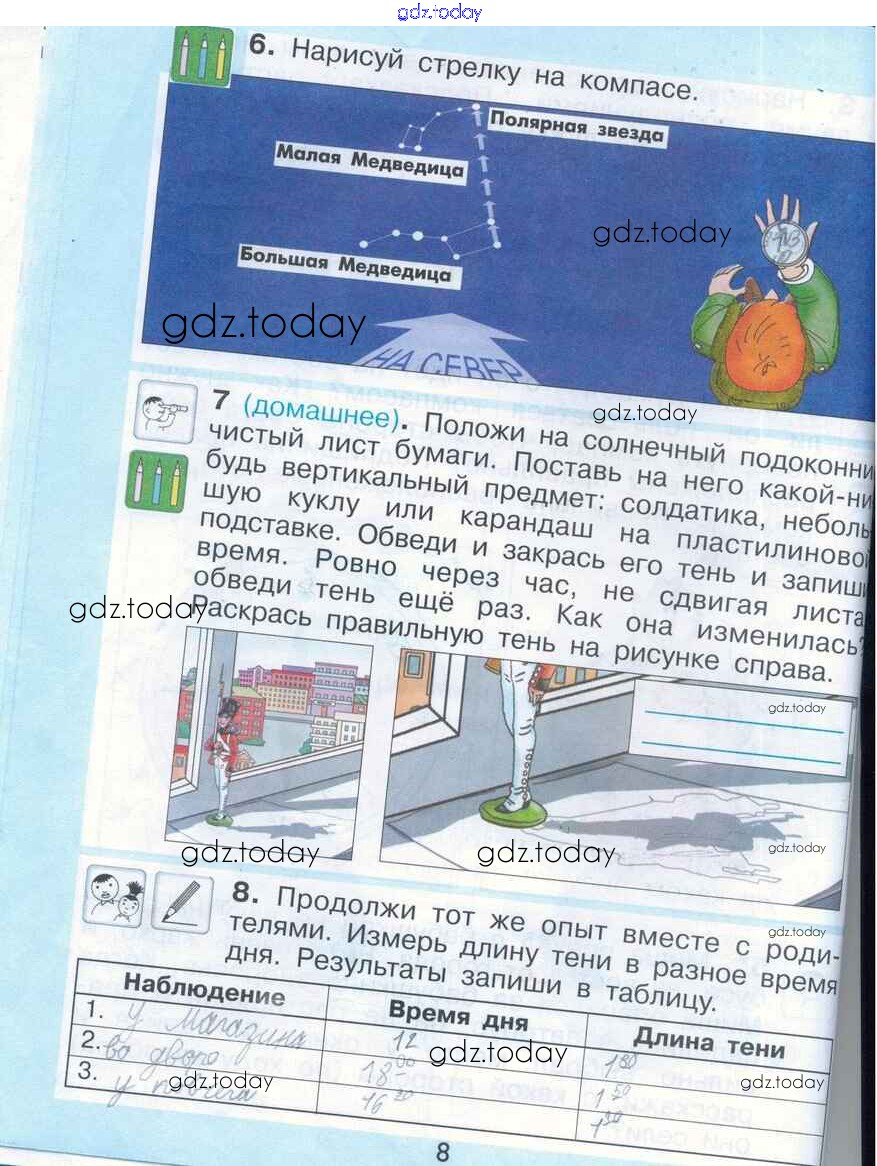 Ответы к Решение к теме 3. Природные часы, календарь и компас стр. 8 Рабочей тетради по Окружающему миру для 2 класса Вахрушев, Бурский Баласс Школа 2100 2016