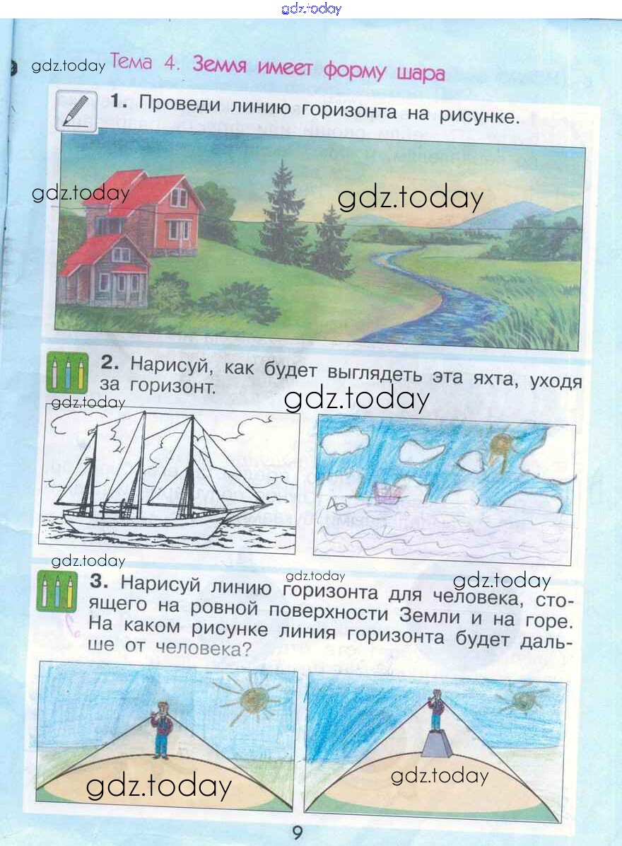 На страницах сайта gdz.today вы найдете учебный и вспомогательный материал, направленный на улучшения знаний школьной программы. ГДЗ - онлайн мир знаний Решение к теме 4. Земля имеет форму шара стр. 9 Рабочей тетради по Окружающему миру для 2 класса Вахрушев, Бурский Баласс Школа 2100 2016
