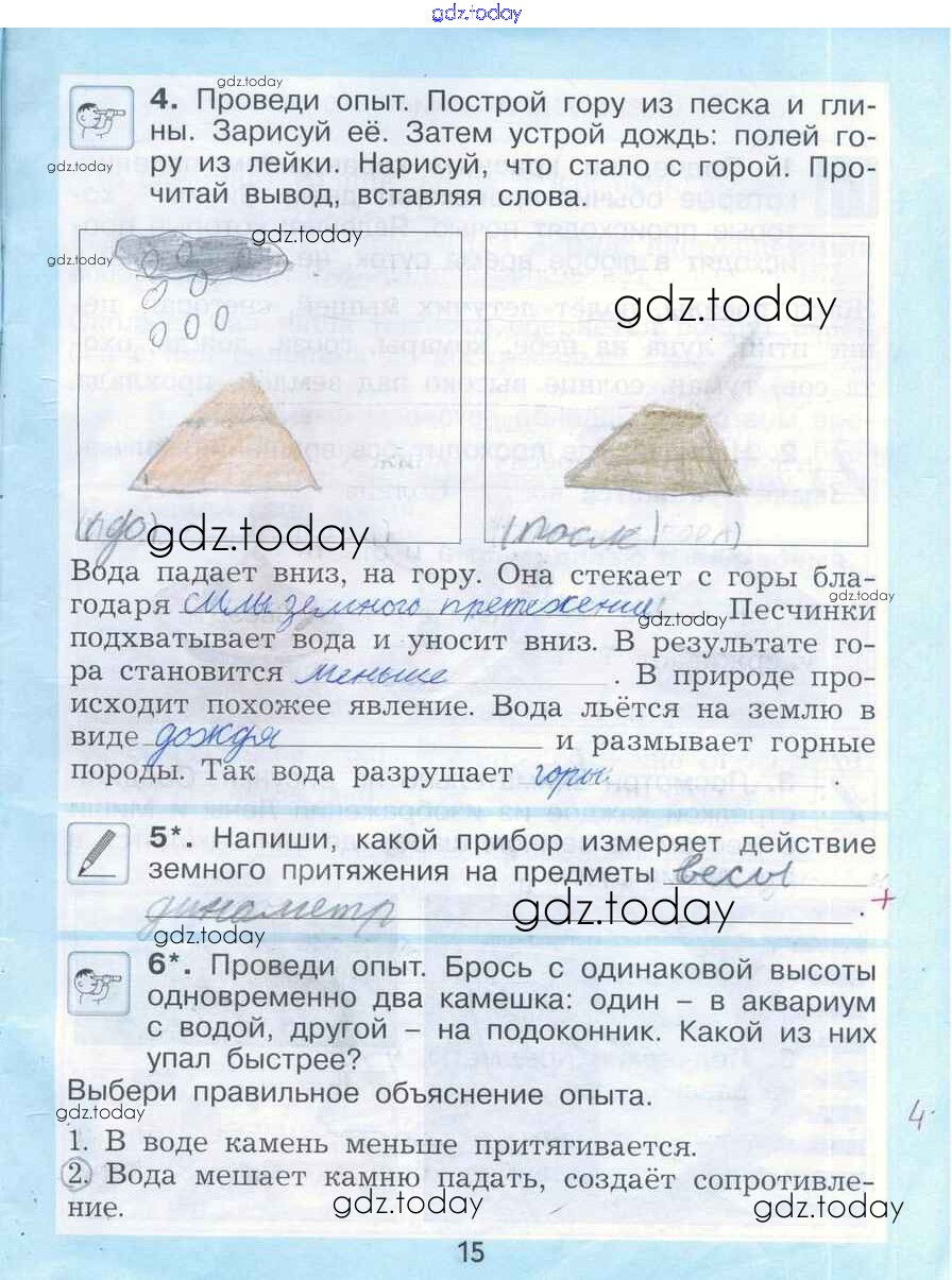 На страницах сайта gdz.today вы найдете учебный и вспомогательный материал, направленный на улучшения знаний школьной программы. ГДЗ - онлайн мир знаний Решение к теме 7. Притяжение Земли стр. 15 Рабочей тетради по Окружающему миру для 2 класса Вахрушев, Бурский Баласс Школа 2100 2016