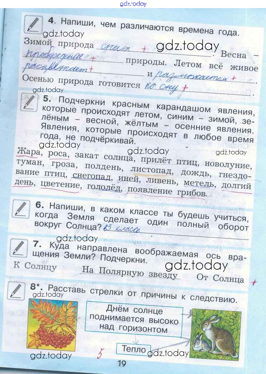 На страницах сайта gdz.today вы найдете учебный и вспомогательный материал, направленный на улучшения знаний школьной программы. ГДЗ - онлайн мир знаний Решение к теме 9. Смена времен года стр. 19 Рабочей тетради по Окружающему миру для 2 класса Вахрушев, Бурский Баласс Школа 2100 2016