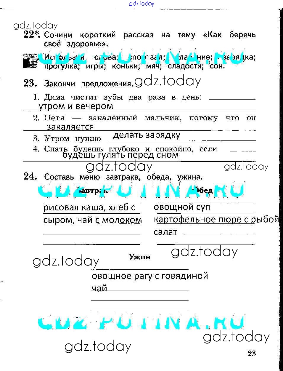 На страницах сайта gdz.today вы найдете учебный и вспомогательный материал, направленный на улучшения знаний школьной программы. ГДЗ - онлайн мир знаний Решение к части 1. Страницы 23 Рабочей тетради по Окружающему миру для 2 класса Виноградова Вентана-граф Алгоритм успеха 2017