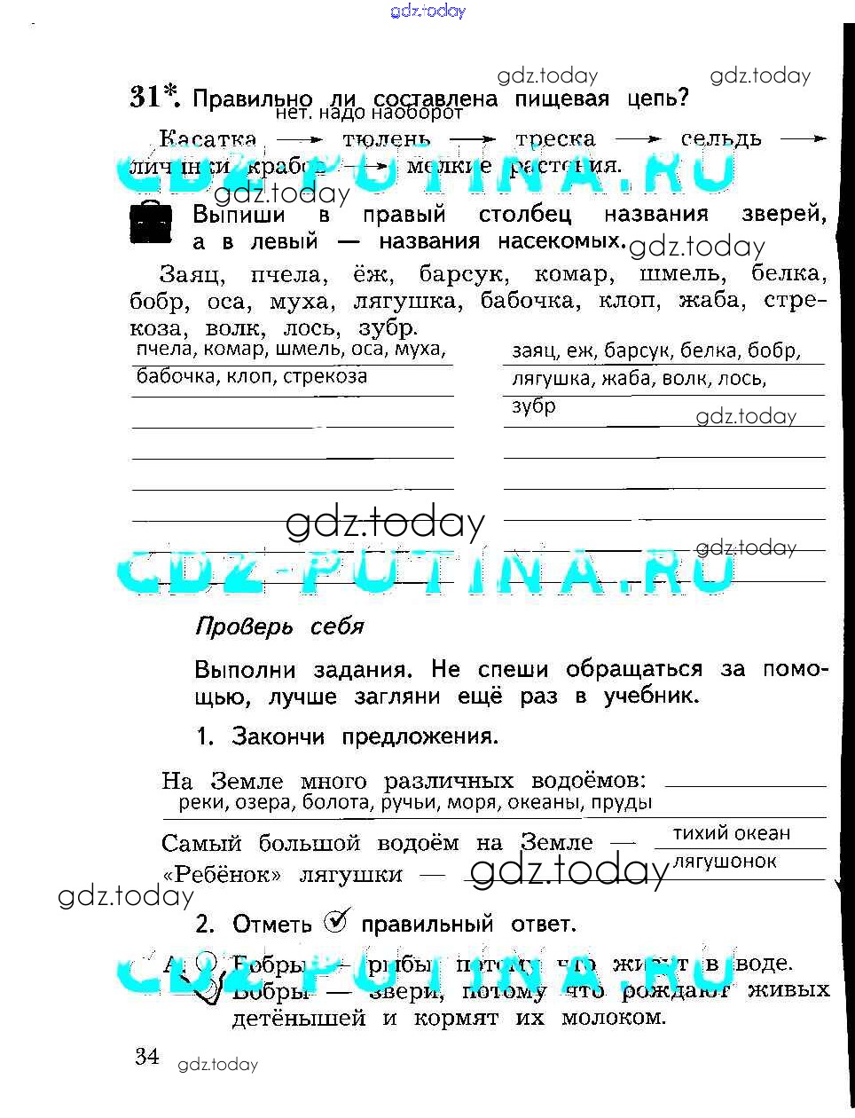 На страницах сайта gdz.today вы найдете учебный и вспомогательный материал, направленный на улучшения знаний школьной программы. ГДЗ - онлайн мир знаний Решение к части 2. Страницы 34 Рабочей тетради по Окружающему миру для 2 класса Виноградова Вентана-граф Алгоритм успеха 2017