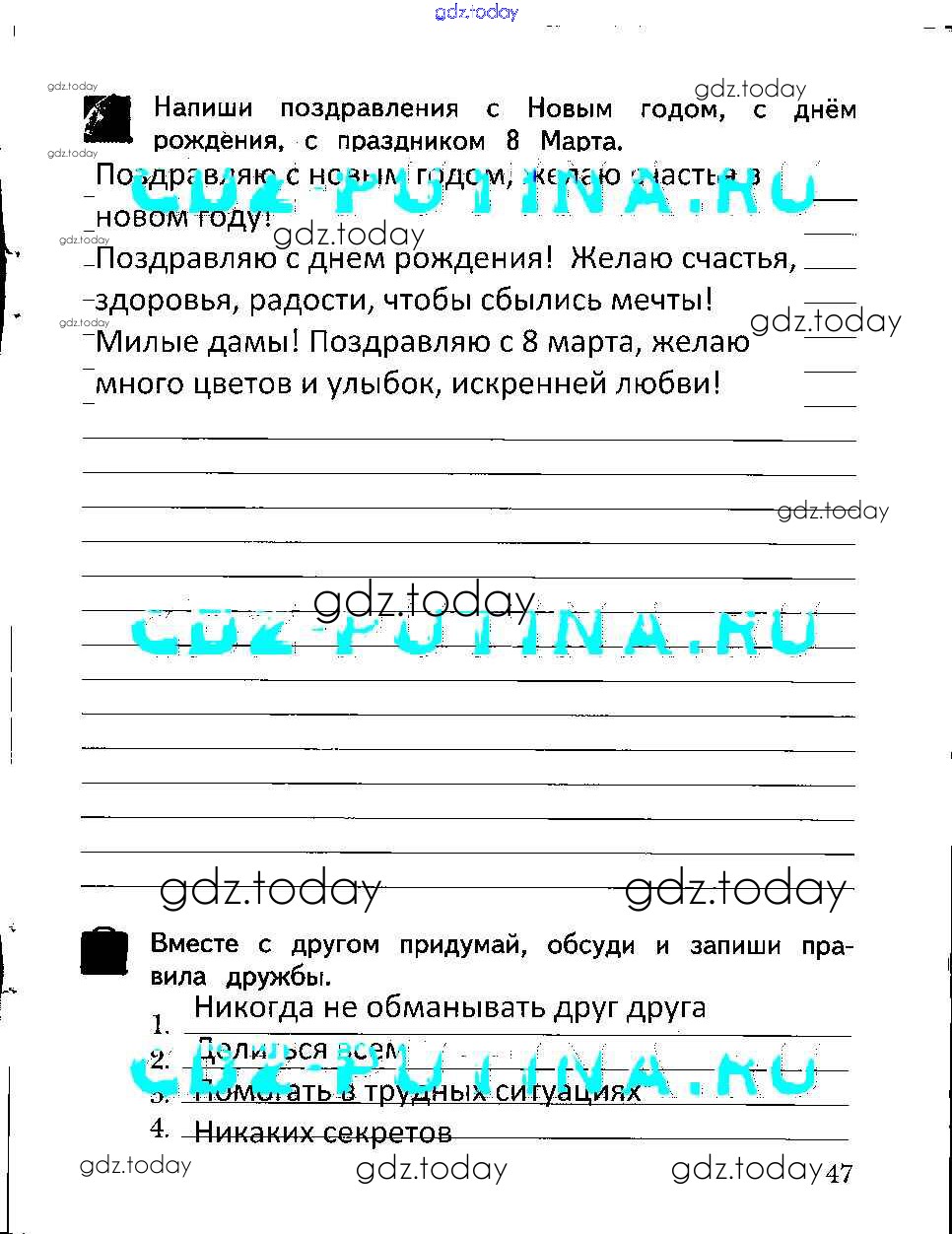 На страницах сайта gdz.today вы найдете учебный и вспомогательный материал, направленный на улучшения знаний школьной программы. ГДЗ - онлайн мир знаний Решение к части 1. Страницы 47 Рабочей тетради по Окружающему миру для 2 класса Виноградова Вентана-граф Алгоритм успеха 2017