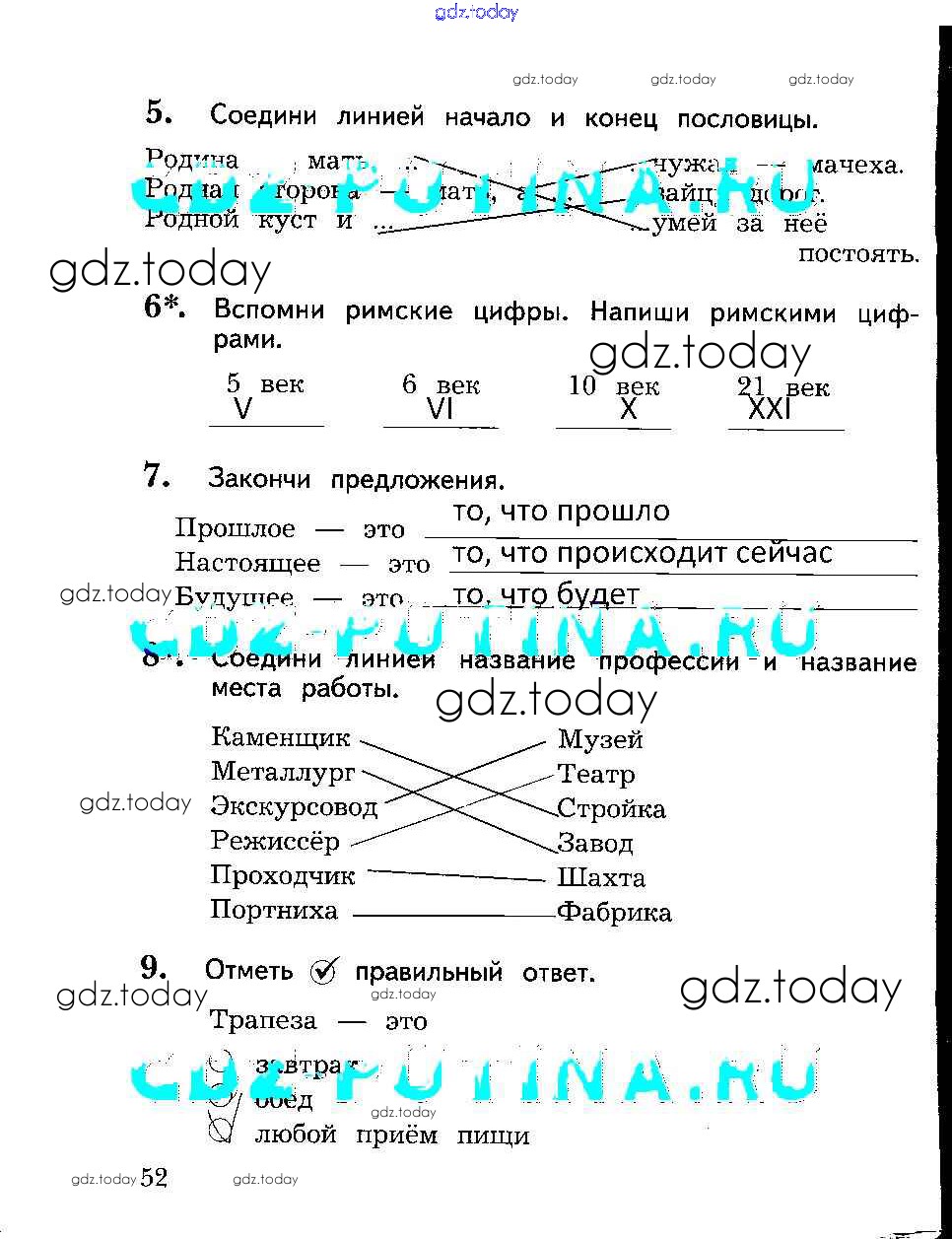 На страницах сайта gdz.today вы найдете учебный и вспомогательный материал, направленный на улучшения знаний школьной программы. ГДЗ - онлайн мир знаний Решение к части 1. Страницы 52 Рабочей тетради по Окружающему миру для 2 класса Виноградова Вентана-граф Алгоритм успеха 2017