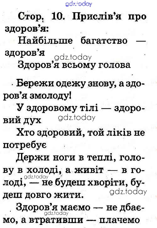 На страницах сайта gdz.today вы найдете учебный и вспомогательный материал, направленный на улучшения знаний школьной программы. ГДЗ - онлайн мир знаний Рішення до Сторінки 10 Учебнику по Основам здоровья для 2 класса Воронцова, Бех Алатон 2012