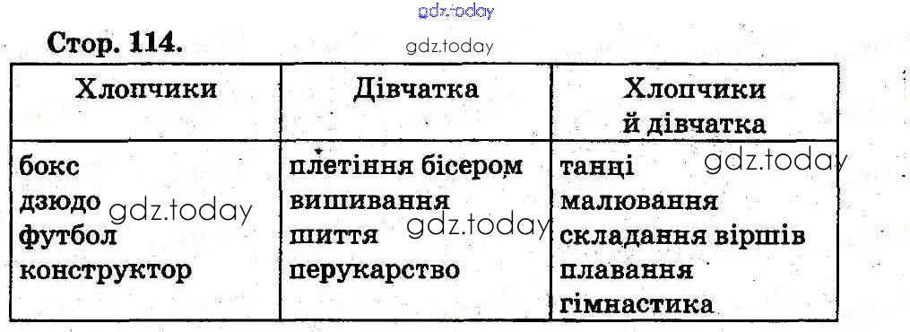 На страницах сайта gdz.today вы найдете учебный и вспомогательный материал, направленный на улучшения знаний школьной программы. ГДЗ - онлайн мир знаний Рішення до Сторінки 114 Учебнику по Основам здоровья для 2 класса Воронцова, Бех Алатон 2012