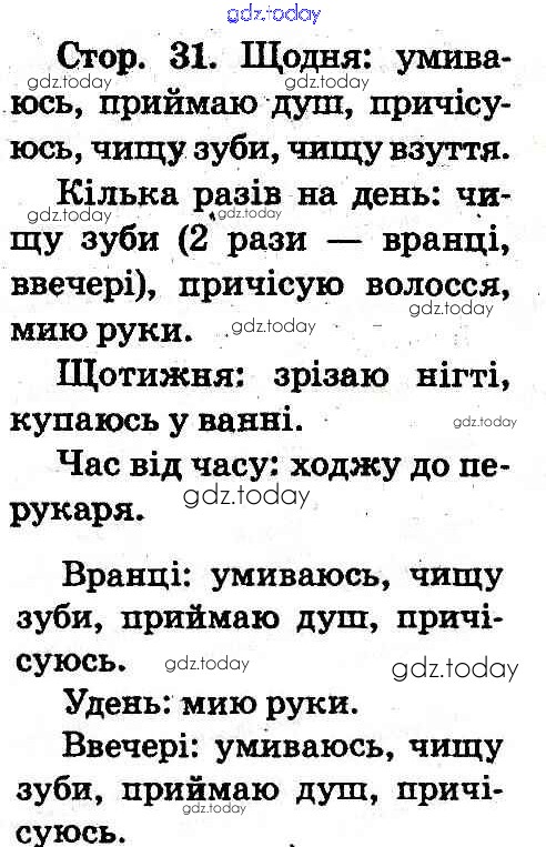 Ответы к Рішення до Сторінки 31 Учебнику по Основам здоровья для 2 класса Воронцова, Бех Алатон 2012