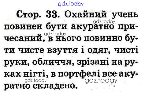 На страницах сайта gdz.today вы найдете учебный и вспомогательный материал, направленный на улучшения знаний школьной программы. ГДЗ - онлайн мир знаний Рішення до Сторінки 33 Учебнику по Основам здоровья для 2 класса Воронцова, Бех Алатон 2012