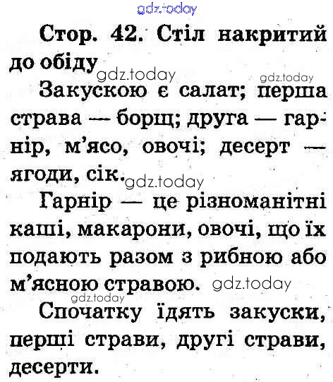 На страницах сайта gdz.today вы найдете учебный и вспомогательный материал, направленный на улучшения знаний школьной программы. ГДЗ - онлайн мир знаний Рішення до Сторінки 42 Учебнику по Основам здоровья для 2 класса Воронцова, Бех Алатон 2012