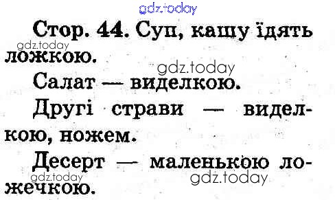 На страницах сайта gdz.today вы найдете учебный и вспомогательный материал, направленный на улучшения знаний школьной программы. ГДЗ - онлайн мир знаний Рішення до Сторінки 44 Учебнику по Основам здоровья для 2 класса Воронцова, Бех Алатон 2012