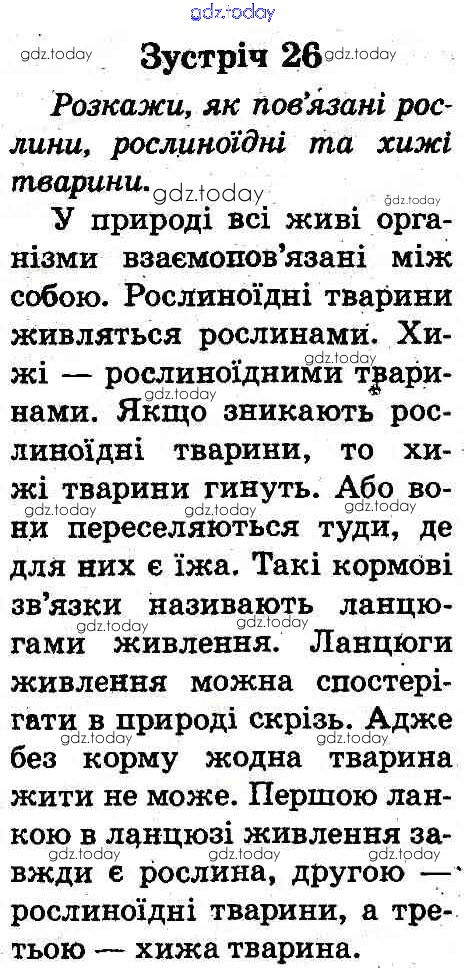 На страницах сайта gdz.today вы найдете учебный и вспомогательный материал, направленный на улучшения знаний школьной программы. ГДЗ - онлайн мир знаний Рішення до Зустрічі 26 Учебнику по Природоведению для 2 класса Грущинская Освiта 2012
