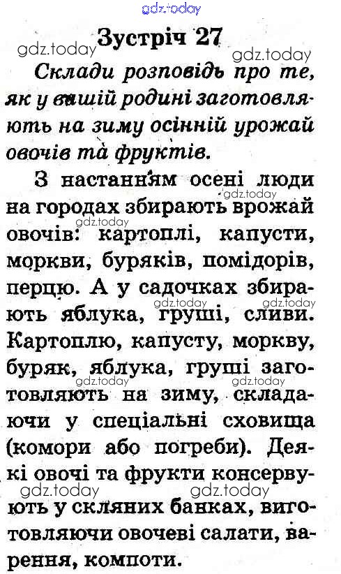 На страницах сайта gdz.today вы найдете учебный и вспомогательный материал, направленный на улучшения знаний школьной программы. ГДЗ - онлайн мир знаний Рішення до Зустрічі 27 Учебнику по Природоведению для 2 класса Грущинская Освiта 2012