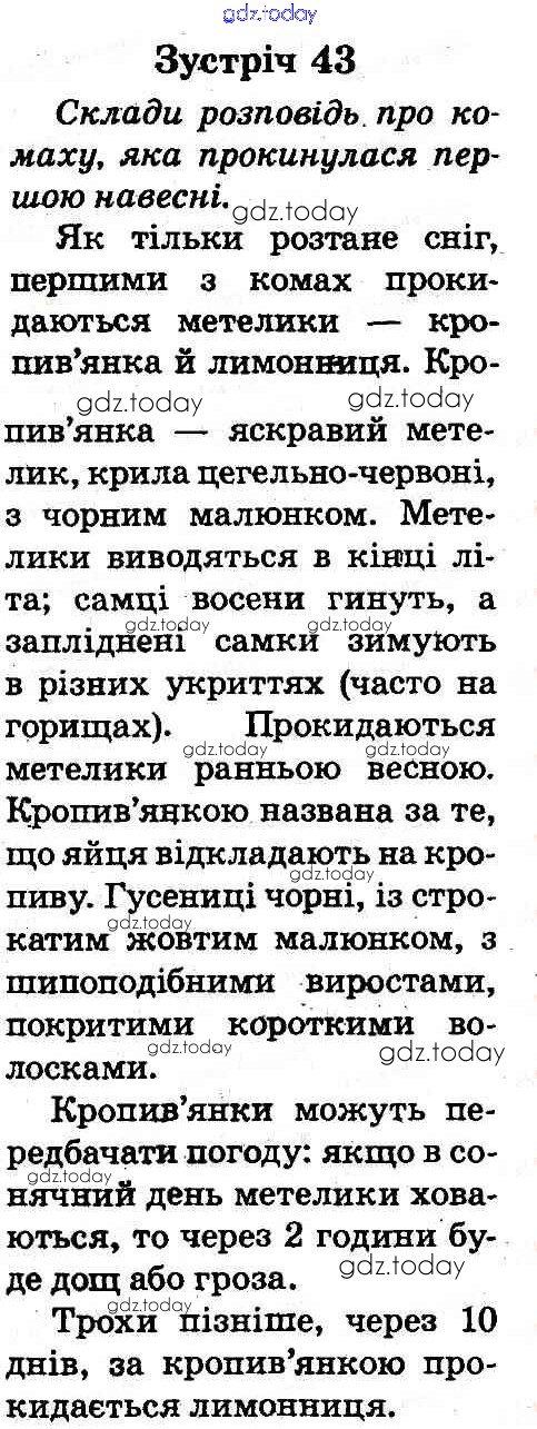 Ответы к Рішення до Зустрічі 43 Учебнику по Природоведению для 2 класса Грущинская Освiта 2012