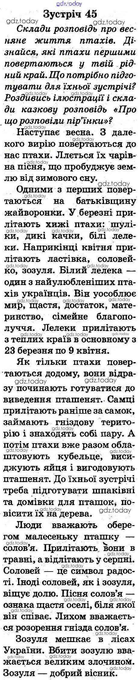 На страницах сайта gdz.today вы найдете учебный и вспомогательный материал, направленный на улучшения знаний школьной программы. ГДЗ - онлайн мир знаний Рішення до Зустрічі 45 Учебнику по Природоведению для 2 класса Грущинская Освiта 2012