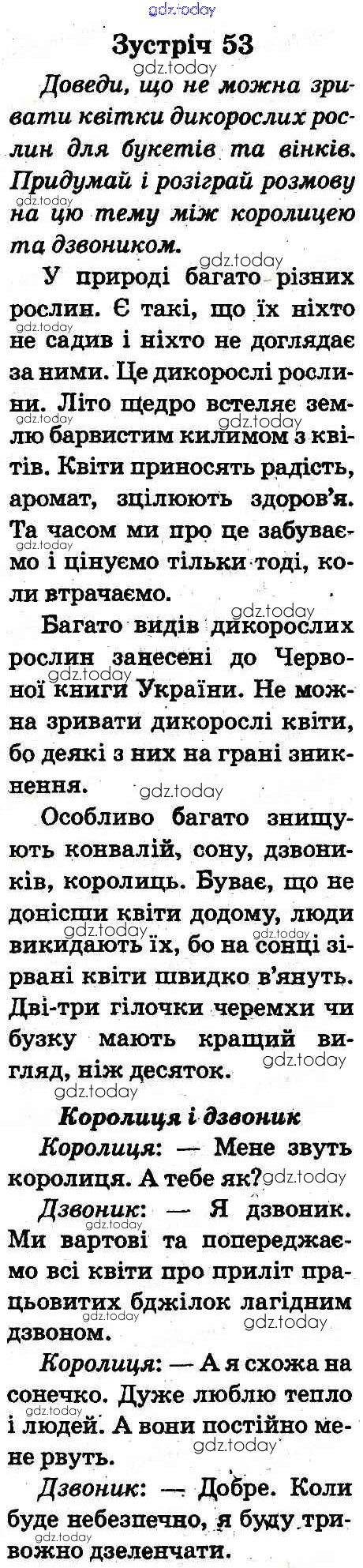 На страницах сайта gdz.today вы найдете учебный и вспомогательный материал, направленный на улучшения знаний школьной программы. ГДЗ - онлайн мир знаний Рішення до Зустрічі 53 Учебнику по Природоведению для 2 класса Грущинская Освiта 2012