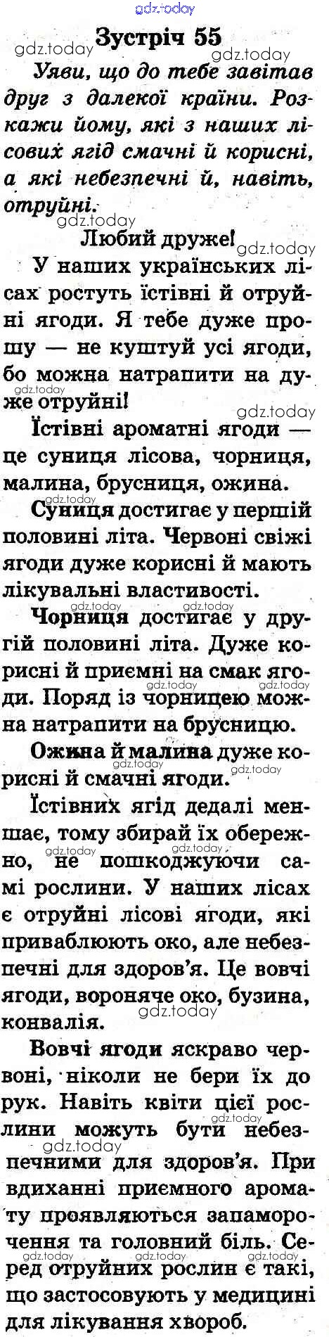 На страницах сайта gdz.today вы найдете учебный и вспомогательный материал, направленный на улучшения знаний школьной программы. ГДЗ - онлайн мир знаний Рішення до Зустрічі 55 Учебнику по Природоведению для 2 класса Грущинская Освiта 2012