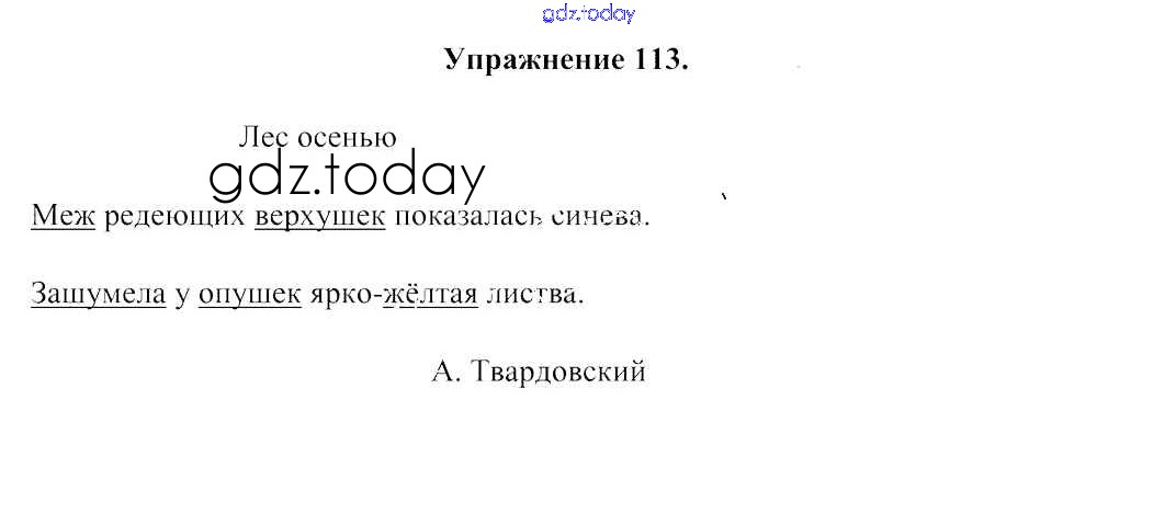 На страницах сайта gdz.today вы найдете учебный и вспомогательный материал, направленный на улучшения знаний школьной программы. ГДЗ - онлайн мир знаний Решение к части 1. Упражнения 113 Учебнику по Русскому языку для 2 класса Антипова, Верниковская Аверсэв 2019