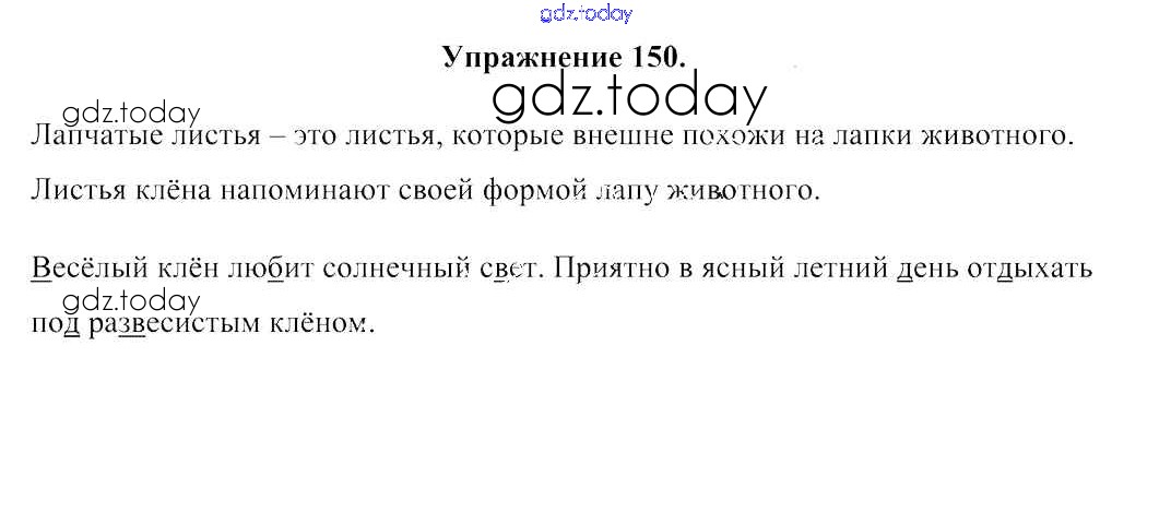 На страницах сайта gdz.today вы найдете учебный и вспомогательный материал, направленный на улучшения знаний школьной программы. ГДЗ - онлайн мир знаний Решение к части 1. Упражнения 150 Учебнику по Русскому языку для 2 класса Антипова, Верниковская Аверсэв 2019