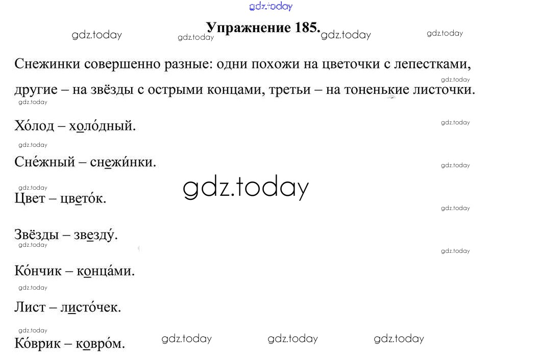 На страницах сайта gdz.today вы найдете учебный и вспомогательный материал, направленный на улучшения знаний школьной программы. ГДЗ - онлайн мир знаний Решение к части 1. Упражнения 185 Учебнику по Русскому языку для 2 класса Антипова, Верниковская Аверсэв 2019