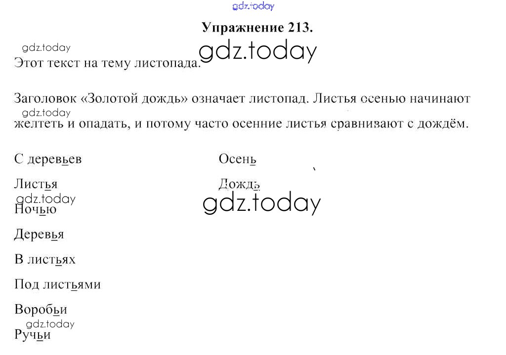 На страницах сайта gdz.today вы найдете учебный и вспомогательный материал, направленный на улучшения знаний школьной программы. ГДЗ - онлайн мир знаний Решение к части 1. Упражнения 213 Учебнику по Русскому языку для 2 класса Антипова, Верниковская Аверсэв 2019