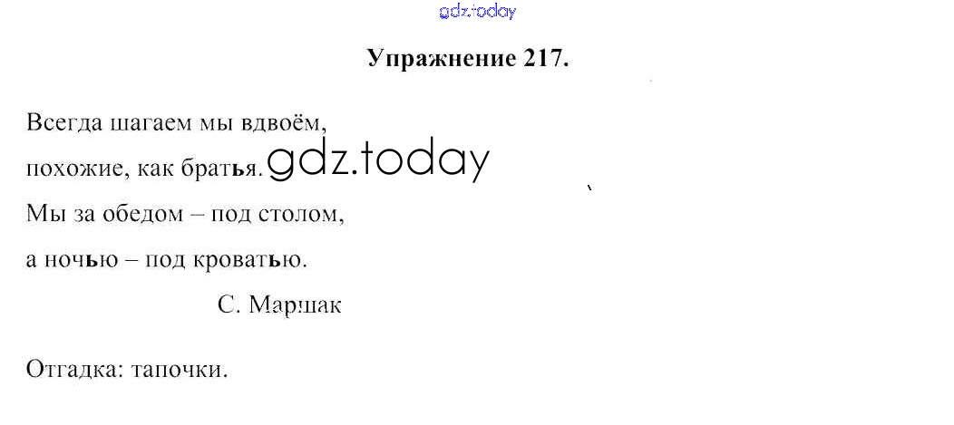На страницах сайта gdz.today вы найдете учебный и вспомогательный материал, направленный на улучшения знаний школьной программы. ГДЗ - онлайн мир знаний Решение к части 1. Упражнения 217 Учебнику по Русскому языку для 2 класса Антипова, Верниковская Аверсэв 2019