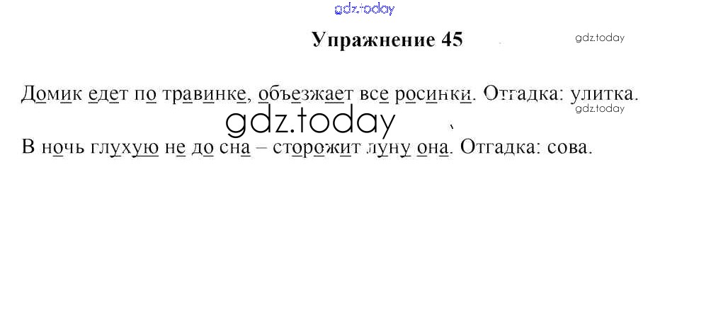 На страницах сайта gdz.today вы найдете учебный и вспомогательный материал, направленный на улучшения знаний школьной программы. ГДЗ - онлайн мир знаний Решение к части 1. Упражнения 45 Учебнику по Русскому языку для 2 класса Антипова, Верниковская Аверсэв 2019