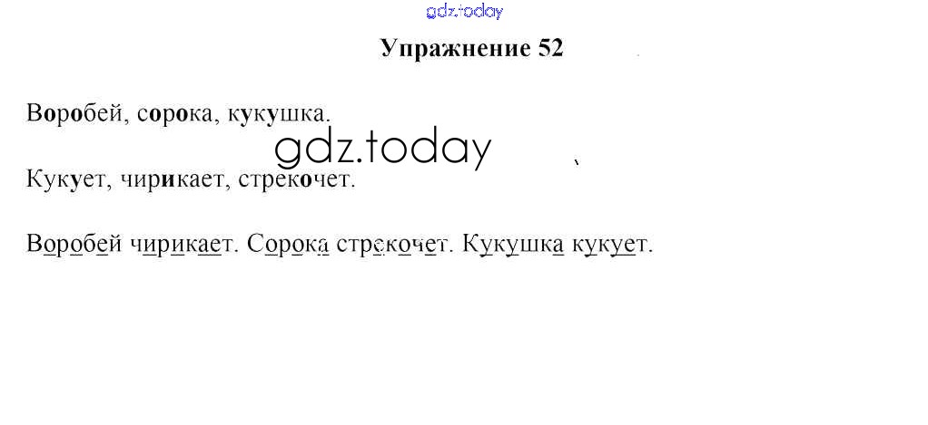 На страницах сайта gdz.today вы найдете учебный и вспомогательный материал, направленный на улучшения знаний школьной программы. ГДЗ - онлайн мир знаний Решение к части 1. Упражнения 52 Учебнику по Русскому языку для 2 класса Антипова, Верниковская Аверсэв 2019