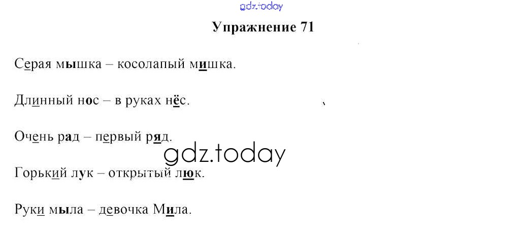 На страницах сайта gdz.today вы найдете учебный и вспомогательный материал, направленный на улучшения знаний школьной программы. ГДЗ - онлайн мир знаний Решение к части 1. Упражнения 71 Учебнику по Русскому языку для 2 класса Антипова, Верниковская Аверсэв 2019
