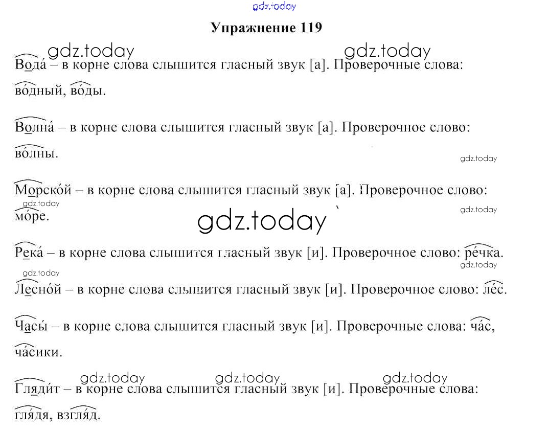 Ответы к Решение к части 2. Упражнения 119 Учебнику по Русскому языку для 2 класса Антипова, Верниковская Аверсэв 2019