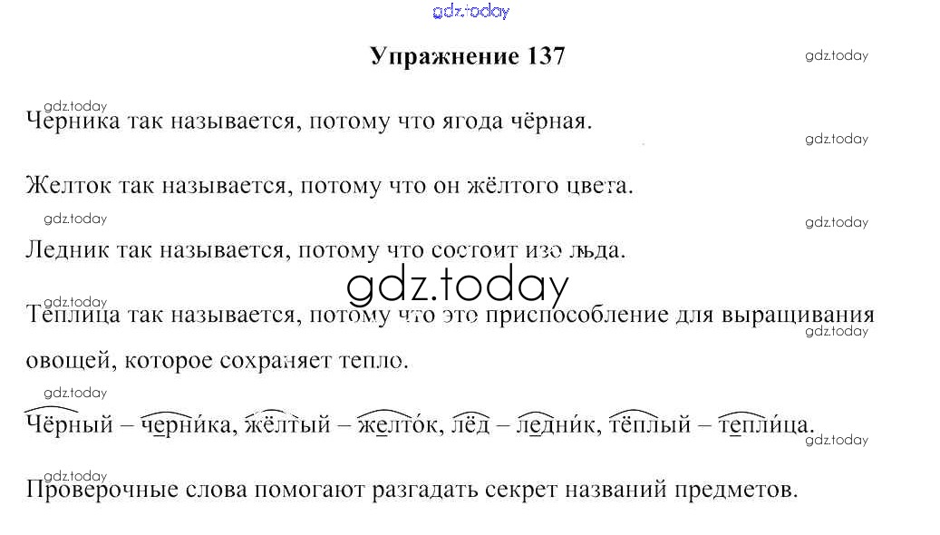 На страницах сайта gdz.today вы найдете учебный и вспомогательный материал, направленный на улучшения знаний школьной программы. ГДЗ - онлайн мир знаний Решение к части 2. Упражнения 137 Учебнику по Русскому языку для 2 класса Антипова, Верниковская Аверсэв 2019