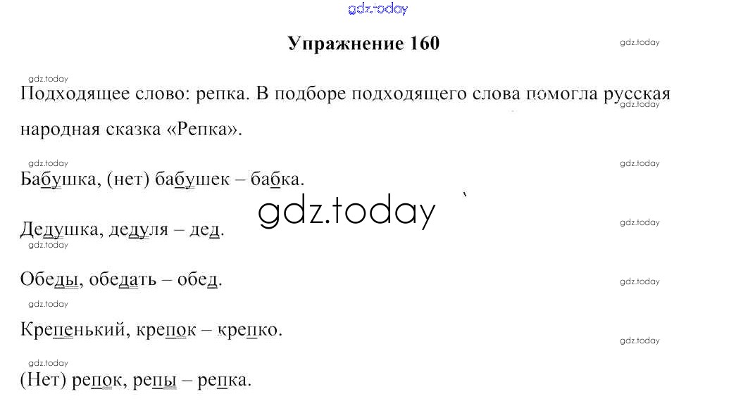 На страницах сайта gdz.today вы найдете учебный и вспомогательный материал, направленный на улучшения знаний школьной программы. ГДЗ - онлайн мир знаний Решение к части 2. Упражнения 160 Учебнику по Русскому языку для 2 класса Антипова, Верниковская Аверсэв 2019