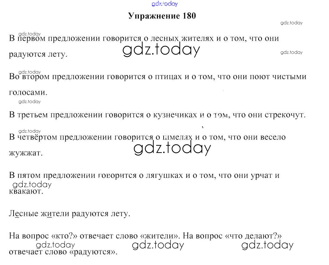 На страницах сайта gdz.today вы найдете учебный и вспомогательный материал, направленный на улучшения знаний школьной программы. ГДЗ - онлайн мир знаний Решение к части 2. Упражнения 180 Учебнику по Русскому языку для 2 класса Антипова, Верниковская Аверсэв 2019