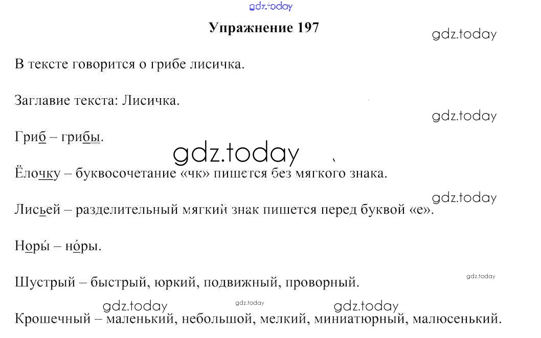На страницах сайта gdz.today вы найдете учебный и вспомогательный материал, направленный на улучшения знаний школьной программы. ГДЗ - онлайн мир знаний Решение к части 2. Упражнения 197 Учебнику по Русскому языку для 2 класса Антипова, Верниковская Аверсэв 2019