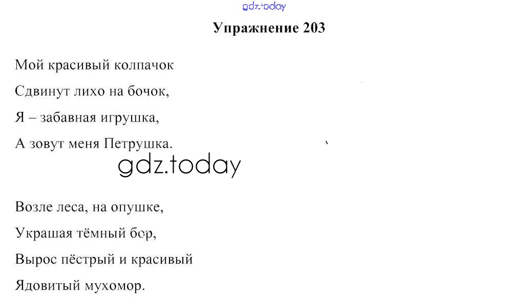 На страницах сайта gdz.today вы найдете учебный и вспомогательный материал, направленный на улучшения знаний школьной программы. ГДЗ - онлайн мир знаний Решение к части 2. Упражнения 203 Учебнику по Русскому языку для 2 класса Антипова, Верниковская Аверсэв 2019