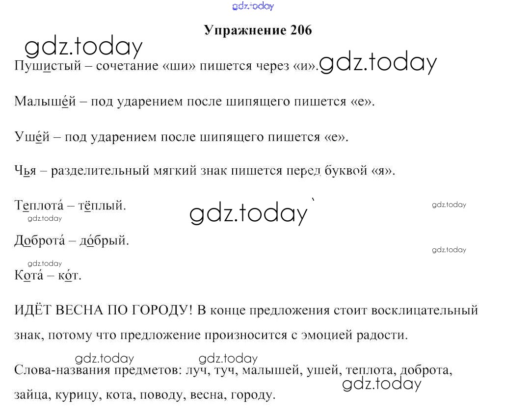 На страницах сайта gdz.today вы найдете учебный и вспомогательный материал, направленный на улучшения знаний школьной программы. ГДЗ - онлайн мир знаний Решение к части 2. Упражнения 206 Учебнику по Русскому языку для 2 класса Антипова, Верниковская Аверсэв 2019